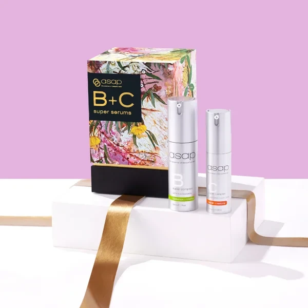 ASAP B + C Super Serum Collection includes the daily essential and award winner ASAP Super B Complex 30ml and ASAP Super C Complex Serum 15ml – The perfect combination for a youthful, bright looking skin.