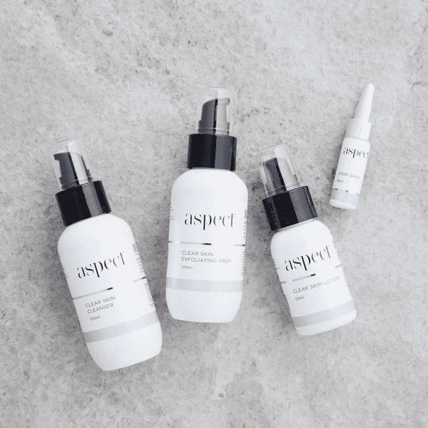 Combat breakouts and skin issues with the Aspect Clear Skin Kit to uncover your best complexion yet. Purify your skin and get rid of daily impurities that could cause clogging with Clear Skin Cleanser, regulate oil levels and reduce shine with Clear Skin Exfoliating Prep, hydrate and nourish with Clear Skin Lotion and manage breakouts with exfoliating Spot Spot Treatment.Â