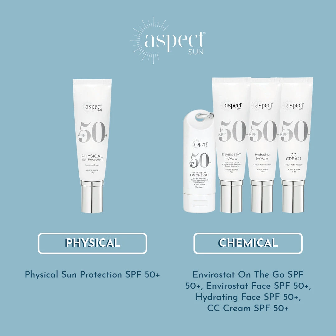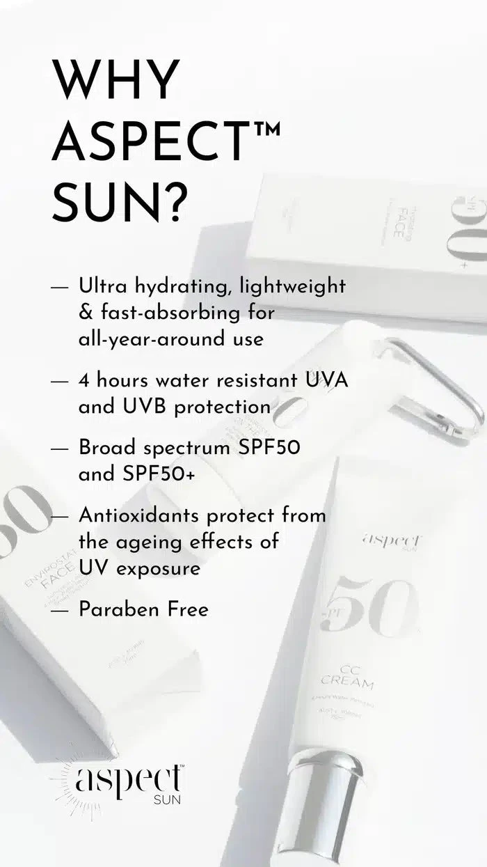 Aspect™ Sun Hydrating Face SPF 50+ is a hardworking moisturiser offering 4 hour water-resistant hydration and superior 50+ broad spectrum sun protection. Powered by antioxidants, its lightweight formula nourishes and gives skin an immediate, even glow. SPF 50+ wards off harmful UVA & UVB rays, so you can safely enjoy your time outdoors. It’s the perfect choice for those who want to look and feel their best all summer long.