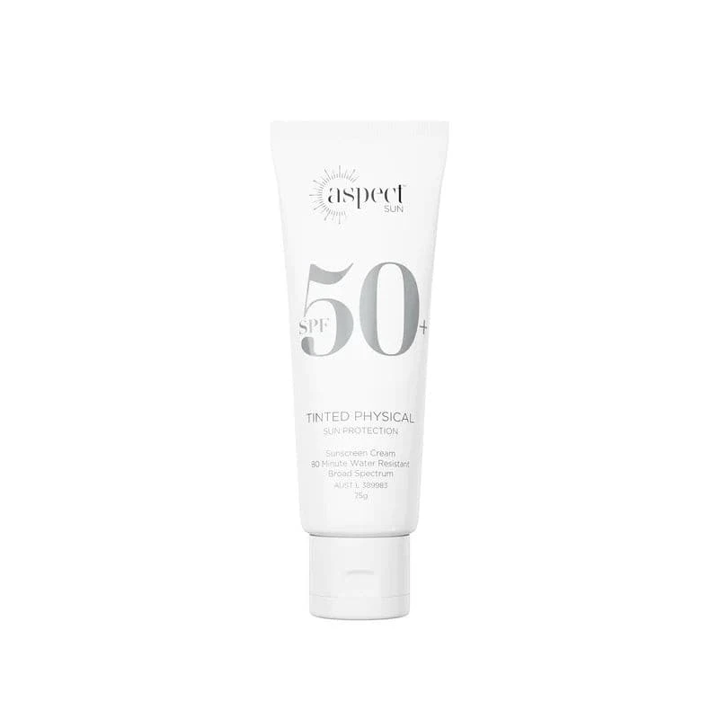Aspect Sun Tinted Physical Sun Protection is a tinted mineral sunscreen providing broad spectrum UVA and UVB SPF 50+ protection whilst helping to even out skin tone, making it a perfect base for your other beauty products.