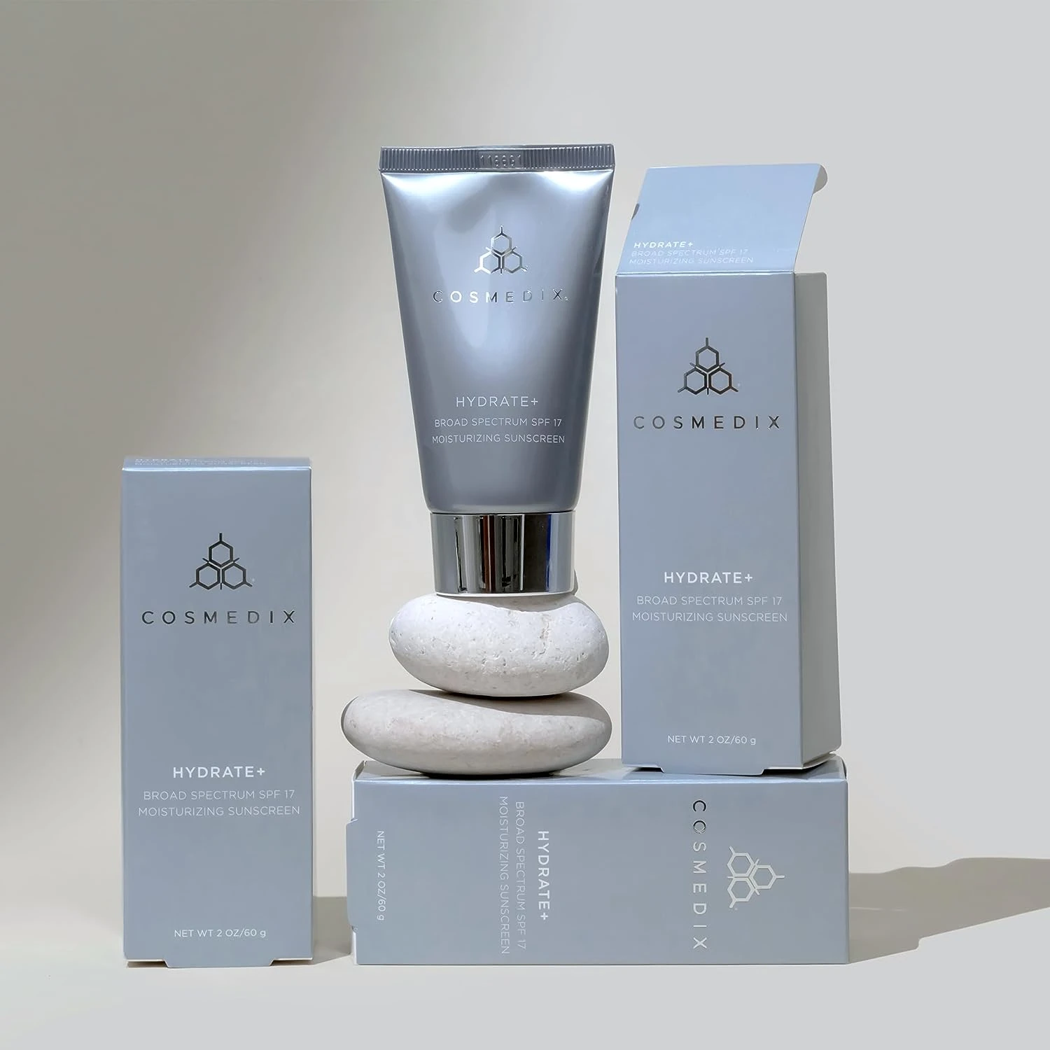 Introducing Cosmedix Hydrate+, a luxurious moisturizing sunscreen that goes beyond ordinary skincare. This indulgent formula boasts broad spectrum protection, shielding your skin from harmful UVA and UVB rays with the power of Zinc Clear and antioxidants.