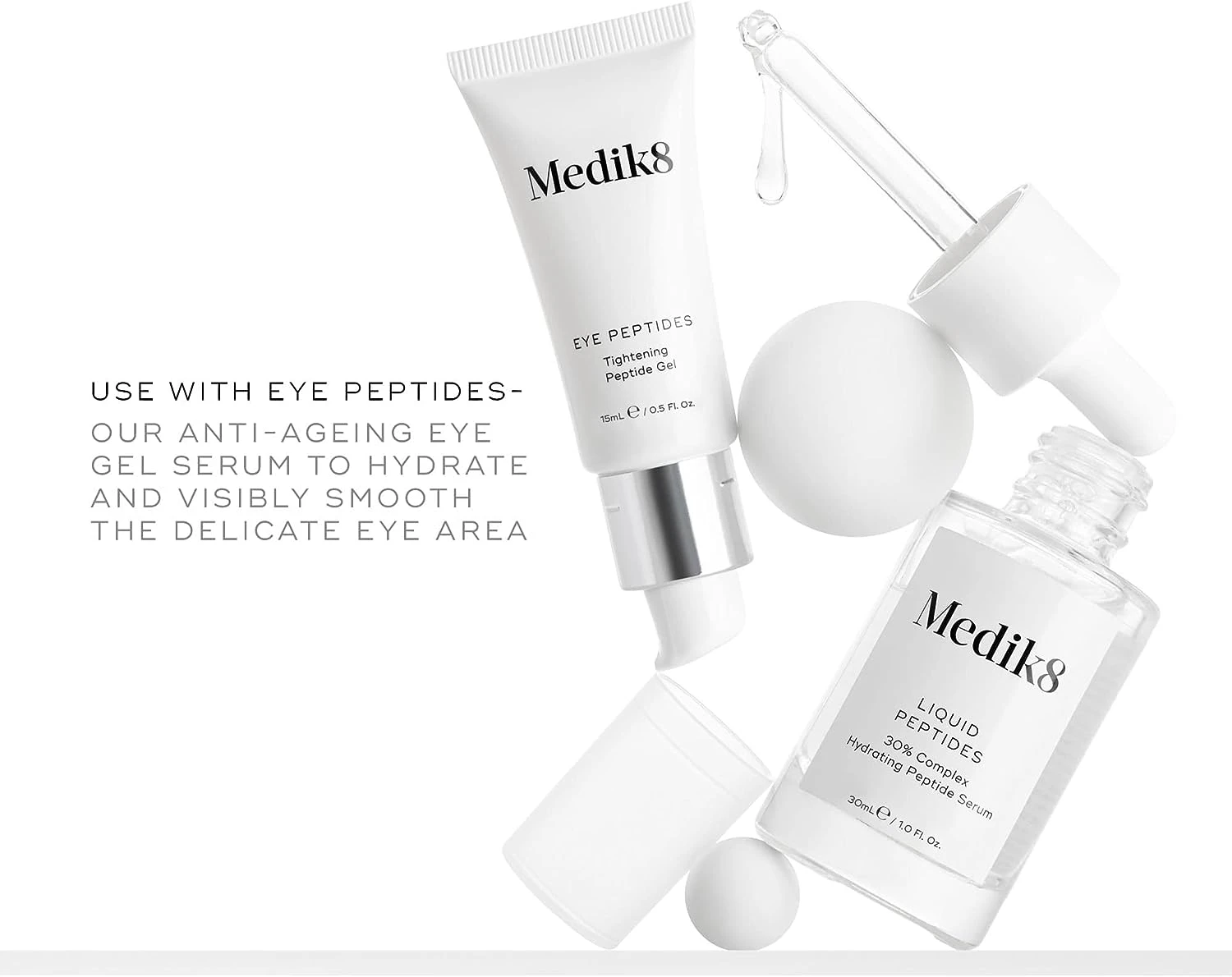 Enriching the Medik8 CSA routine, Liquid Peptides work in tandem with the morning’s vitamin-C application and the night-time vitamin-A procedure to maximize its efficacy..
