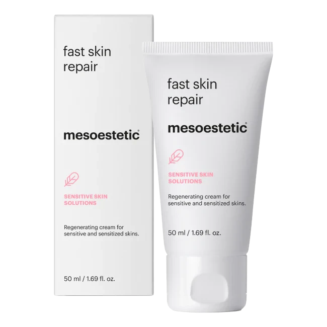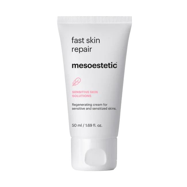 Mesoestetic Fast Skin Repair is an intensive cream with soothing, decongestant and anti-inflammatory properties that helps to repair the skin and heal tissues damaged by sun exposure or the application of treatments that activate a peeling process.