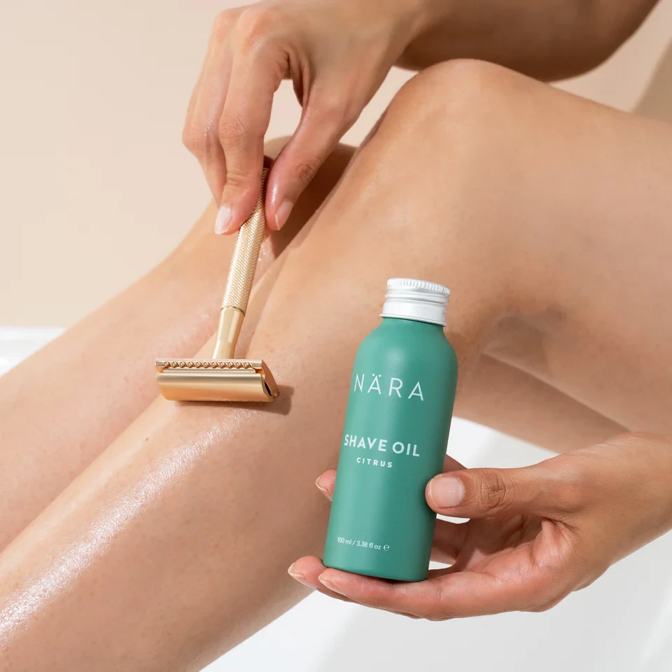 Go wild with the Nära Shave Oi. Pour it into your hand, and work it into the area you’re about to shave. Keep massaging; more is better! As you work it in, you’ll see what a difference it makes…so go ahead and treat yourself!